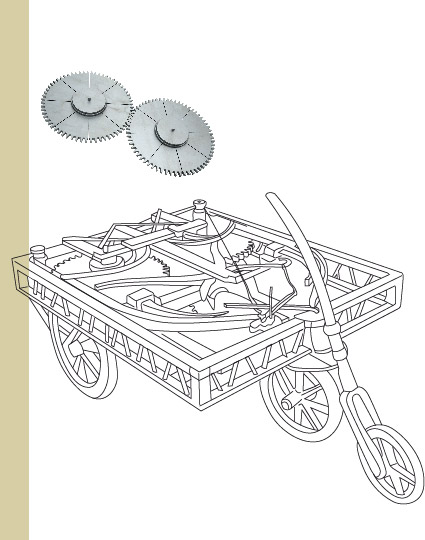 Analizzando gli schizzi possiamo osservare come Leonardo avesse dotato il carro di un rudimentale differenziale permettendo così di impostare l'angolo di svolta dell'automa.